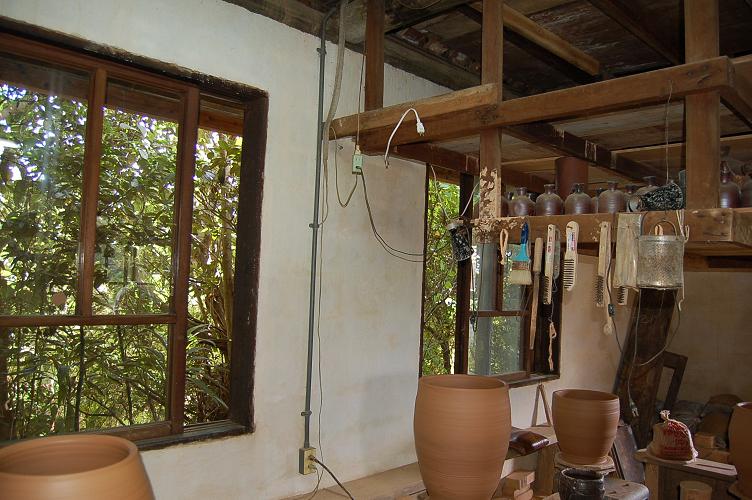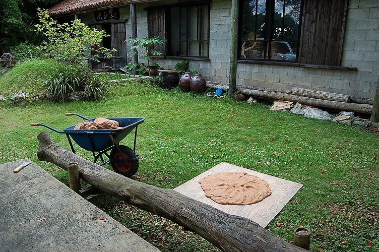 今日は窯場の植物に十分散水をし、工房の土間にもジョロで水を掛け土を固めよう。
