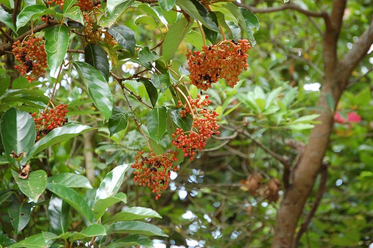 6/4 接木されたマンゴーの苗木を7年前、ヤンバルに行った際に購入、窯場に植えた。やっと、昨年花が咲き米粒大の実を無数に