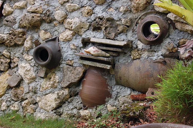 ツマグロヒョウモン蝶が入り込んでくる。成蝶が卵を産み付けている。幼虫の食草であるリュウキュウコスミレは、ほぼ食い