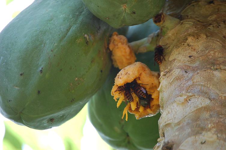 現場を見ていないので確証できないが、みごとに多数の種だけが散乱していた。この調子では、パパイヤもとあきらめて