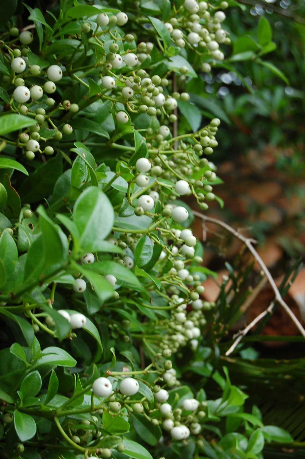 40個の実を付け垂れ下がった。昨年ビワの実が熟む前の青い時期に、大コウモリの仕業か、他の小鳥との共同作業なのか