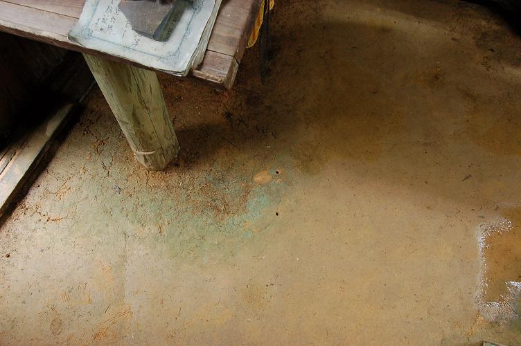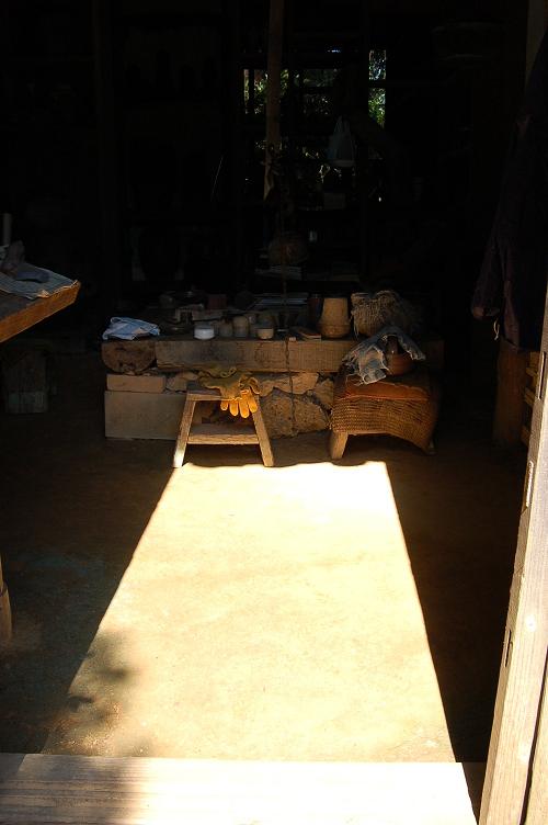 土間と光との対話。残暑の光線・・?が、さらに工房の奥まで入りこむ。コンクリートと違って、穏やかに