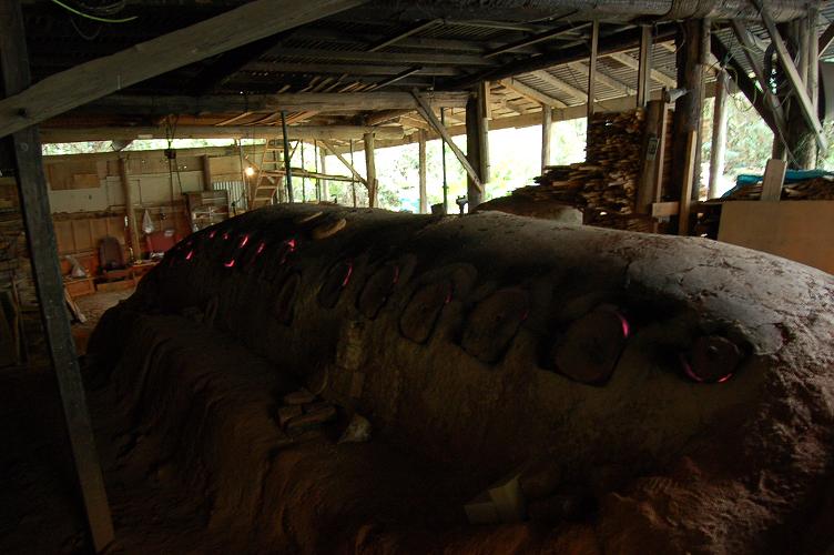 450℃〜600℃黒煙が噴出し色見穴(差し薪投入穴)に煤がつく。焼き〆は日数をかけ、ゆっくり長時間焚き続ければ良い