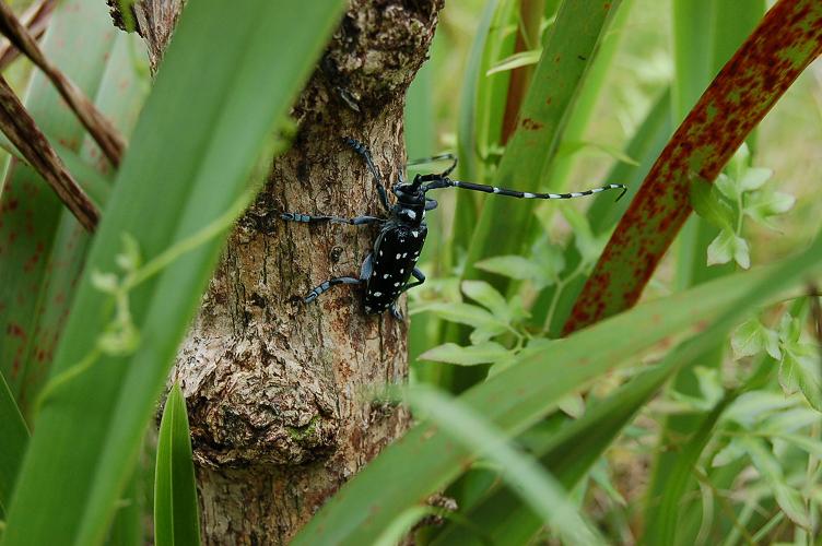 ゴマダラカミキリ。窯場おなじみのサクララン、季節に関係なく、3,4度咲く。