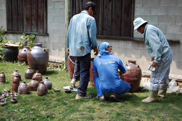 最終日の攻め焚きは人数と焼成温度との調整で一日延長となった。窯焚き人7名で8日間、焚き続けなんとか