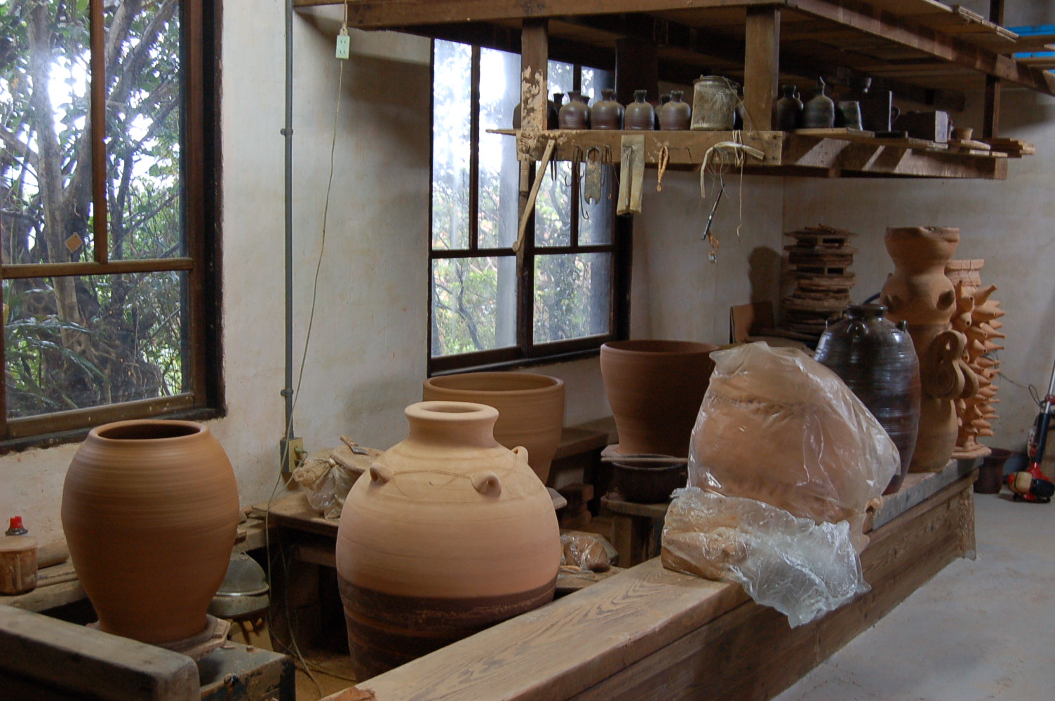 大物を作る際は乾きすぎない内に繋いで作り続けなければいけないので、一通り大壺ができるまでは気をつかう。2,3日続いた快晴が雨になり