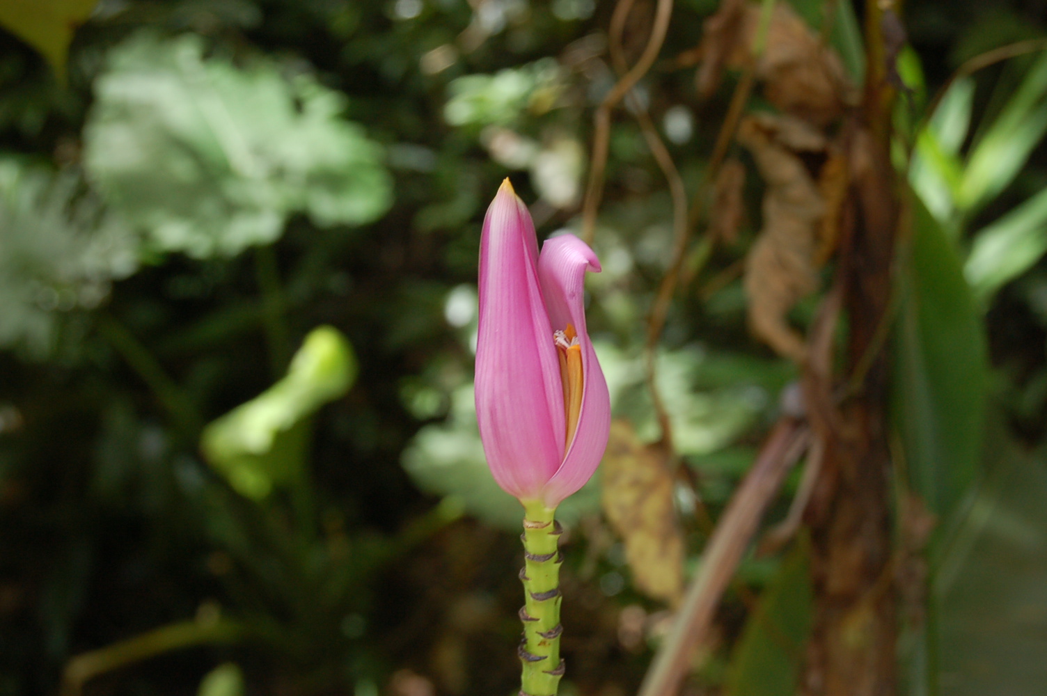窯場のガマの出口に珍花が咲いていた。ネットで調べるがわからない。バナナの花は強い日差しに耐え枯れんに