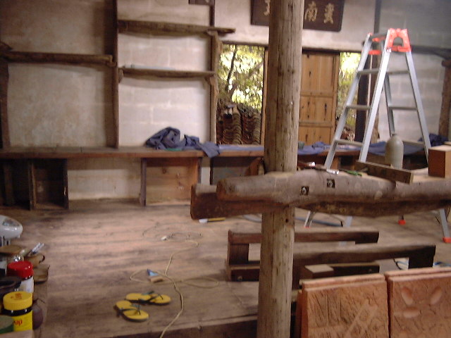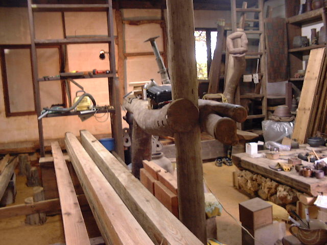 一週間前より展示室の床を全ておこし、落ち込んで傾いた床下がどうなっているか、土台を見ることにした。工房を建てる前山林の木を