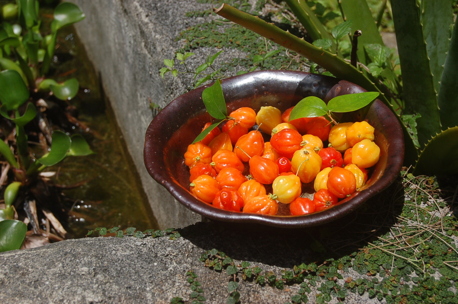 すみれ草には気をつけ、オオバコや伸びた雑草をくさかり機で慎重に刈り取った。翌日紅葉したホルトノキの葉が重なって散らし寿司を広げた