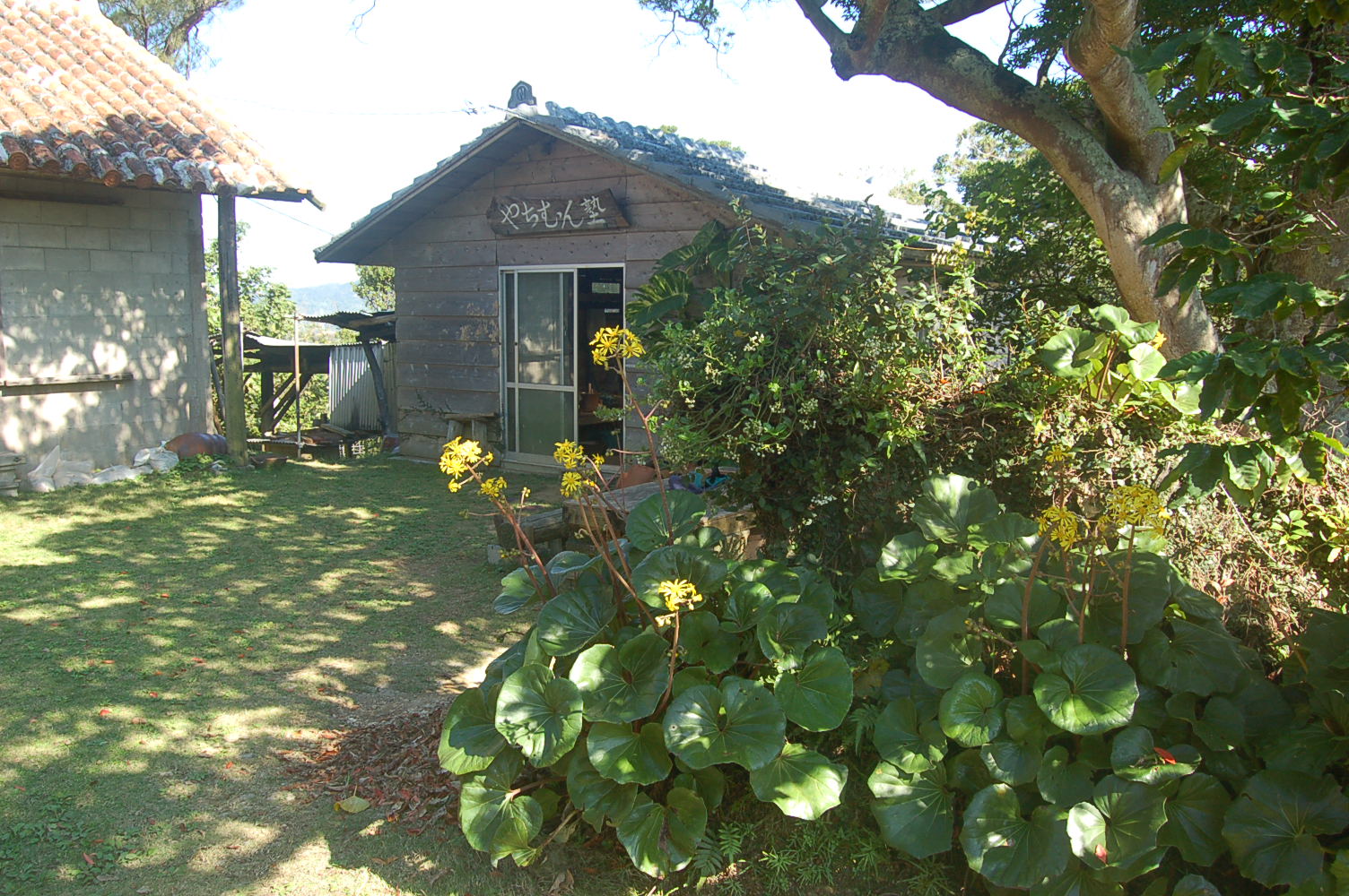 彼はヒガシ恩納三叉路から仲泊に抜ける旧道沿いの窯場に行く出入り口で、今は個人で農機具や重機の修理などをしている。