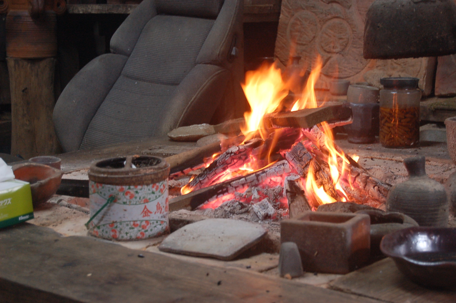 覆っていたため、一部崩れていた。窯場屋根から天井を延ばし、煙突も新しく作り変えた。