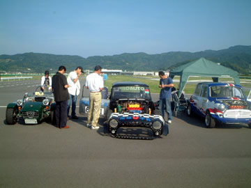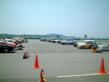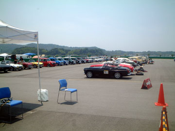 今回で17回目という事であったが、雨に降られたのが1回だけとのことでした。1週間前には雨の予報で諦めていたのですが、当日は快晴で、絶好のジムカーナ日よりといったところでした。逆に暑さでゴールの旗振り係りとしてはきつい1日でもありました。前日はクラブの仲良し(悪友?)数人と近くに泊まって夜遅くまで飲んでいたので、1ヒート目は吐きそうな状態で走りました。