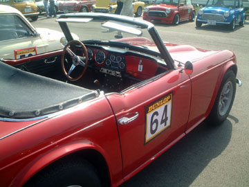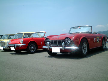 ゼッケン64を着けた私のトラヨン号。左の写真のスピットマークVは、今回の大会実行委員長のS山さん。右の写真の左にちょっとだけ写っているブロードスピードは、今回英車クラス優勝のY田さんの車。私は18車中の12位でフィニッシュ。英車クラストップとの差は約8秒でした。ちなみにS山さんとアルビオンの名物男TVRのO西君にはかろうじて勝つことが出来ました。この3人は前日私と一緒に大騒ぎしていた人達です。また一緒に遊んで頂戴!!