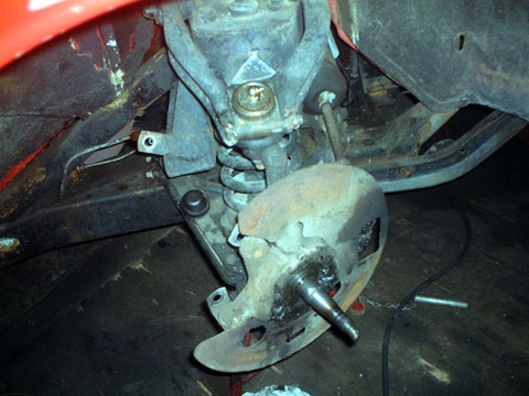 作業写真は有りません。一応、ウマに乗せて、タイヤを外してといった作業手順の後、取