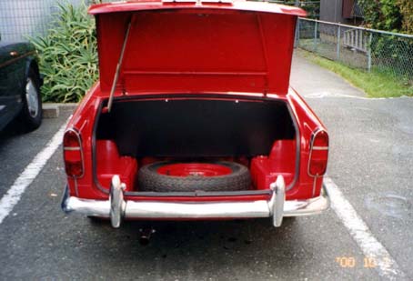 | トランクの間仕切りの板も、ぼろぼろだったので、すぐに捨ててしまった。 ホームセンターで、適当な板を購入し、作成した。写真だときれいに見えるが、本当はかなりいい加減。 |