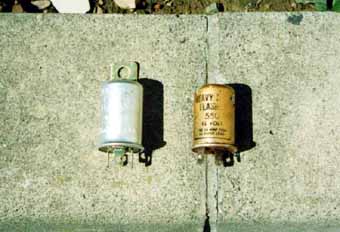 | ウィンカーの動作がおかしくなってきたので交換しました。 ゴールドの物が、交換前のリレー で、左のシルバーのリレーが交換した物。 3端子の形のリレーでした。TR4用ではないと思いますが、動作は問題ありません。 |