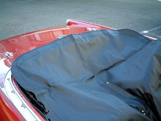 | 頼んであったトノカバーが届いたので、取り付けることにした。 ただ、物を見ると左の写真のように固定するフックは付いていない状態で、自分で加工することにした。 フックの形状も2種類で、後ろ側の棒状のところに引っかけるタイプが16カ所、ドアを含めて前側のボタン状のタイプが10カ所の合計26個を付けることに・・・ |