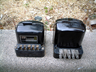 | 2月の有明昼食会でTeeさんから、充電が悪いのであれば一度、レギュレーターの調整をしてみたらと言われたので、帰ってから挑戦した。今まで気がつかなかったのですが、国産のレギュレーターが付いていて、整備書に書いてあるのとは違っていました。調節ビスもなく、適当にラジペンで調整したが、調子は出ませんでした。FDの三輪さんに相談すると、工場に転がっているので良ければと、貰ってきました。交換後、バッチリでした。もう少し追い込めば、回転数をもう少し落とすことが出来ると思います。 左上写真が国産のレギュレーター、左下が今回交換したルーカス製の物。 国産の物は、やや小ぶりでした。 |