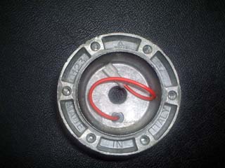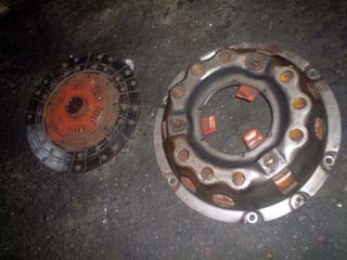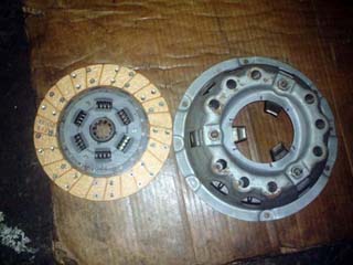 | 左上が今まで使っていたクラッチ板とカバー、右が今回交換した物。クラッチ板は減っていたが、もう少し使える状態だそうです。しかし、新品に比べると厚さが随分違うので、今まで相当頑張っていたようです。左が取り付けた状態ですが、まわりの汚さと比べると大きな落差が・・・本当は全部ばらして、剥離して、塗装してといった作業も行いたいところですが、暫くは我慢して一挙にレストアに突き進みたいと思います。 | |||
