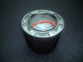 | インターネットでモモ用のボスは見つけていましたので、ナルディー用のアダプタを使用することも考えましたが、現行品は蛇腹ゴムの付いた物とのことでしたので、気長に待つつもりでいました。 ところが先日、オークションにこのボスが出てきました。予想通り、トラにナルディーという組み合わせを考えている人はいないらしく、私がゲットしました。 皮から木へコンバート終了です。もちろんシフトノブも木へ変更です。 |