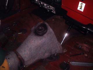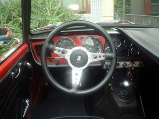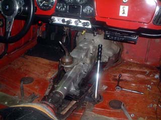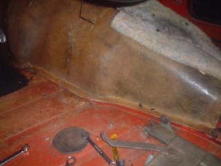 最大の難所は、絨毯を剥いだ後に写真のFRPカバーを外す作業でした。状態は悪くないものの、ボルトを外した後もシール剤の固着等で、かなりの時間をとられました。 しかし、作業記録ということで、私のTR4の汚い部分を皆さんに公表しているわけですが、今回は特に一番問題の内装部分をお見せしなくてはならないので、勇気がいります。 まあ、これを見て、「おお、俺の車奇麗だぜ!」と思っていただければ幸いです。 |