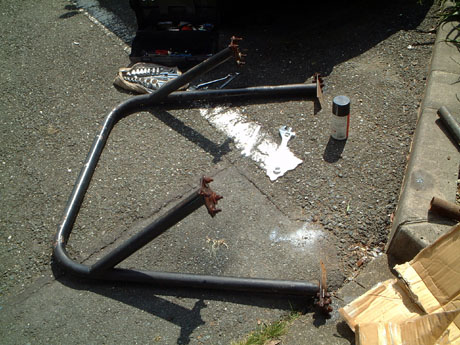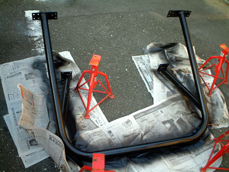 | いずれ自作しようと思っていたロールバーですが、オークションで見つけたので落札しました。 程度は見ての通り、サビサビのハゲハゲ状態。 |