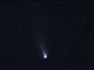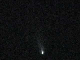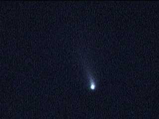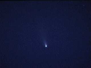 中央上のほうに彗星が見える。平成9年3月11日午前5時ころ撮影。