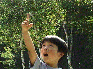 トンボを手にとまらせた「みきお 」