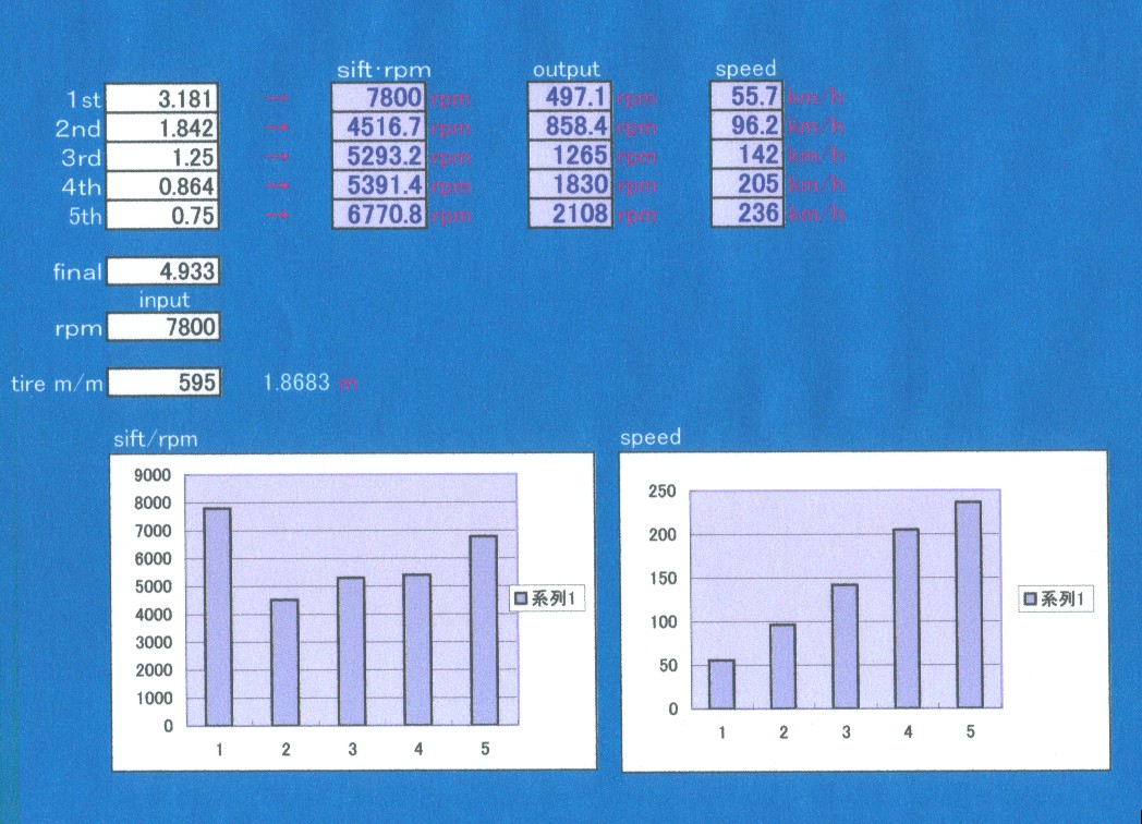 さらに2→3速では約5300rpmという計算結果が出ました。