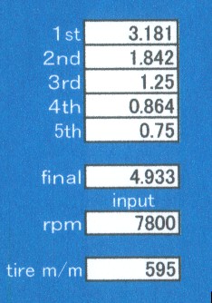 こちらが入力欄です、まず上から1〜5速までの変速比を入力して