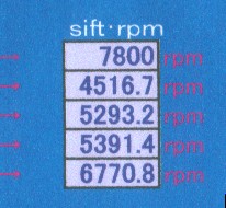 2番目が2速、7800rpmでシフトアップすると2速に入れた時に