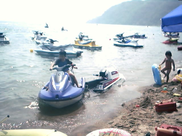 ビーチはこの通りジェットでいっぱい 他県ナンバーがすごく多いです。 こんな所で子供達も水遊びするのだから 皆変わりばんこで監視をしておりました |