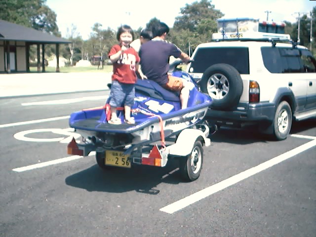 私のジェットスキーを引っ張ってもらってます。