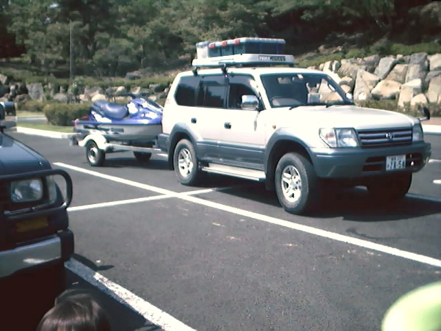 左側が私のプラド、けつにはマリンジェットをしたがえて・・・右側はメンバーのプラド、