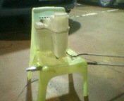 (左)ゴミ箱から拾ってきた、子供用のイスにエアバルブ装着!