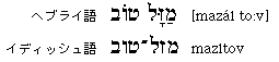 主人公の女性弁護士アリー・マクビールはあるユダヤ人の依頼人が結婚間近と知って一言『マッスル・タフ!』と言います。依頼人はあきれて『それを言うならマゼル・トヴ。でもまあ、ありがとう』と答えます。「マゼル・トヴ」はもともとヘブライ語で「おめでとう」と相手を祝福するときの言葉で、ヘブライ語では「マザル・トーヴ」の方がより原音に近いようです。「マザル」は「運、運命」、「トーヴ」は「良い」という意味で、「マザル・トーヴ」は直訳すると「良い運、幸運(英語なら good luck)」となります。イディッシュ語では mazltov[マズルトヴ]となります。アリーは「マゼル・トヴ」と言うべきところで「マッスル・タフ(Muscle Taugh:筋肉モリモリ)」なんて言ってしまうのですから、相手があきれてしまうのも無理ありません。早くいい男見つけてね。