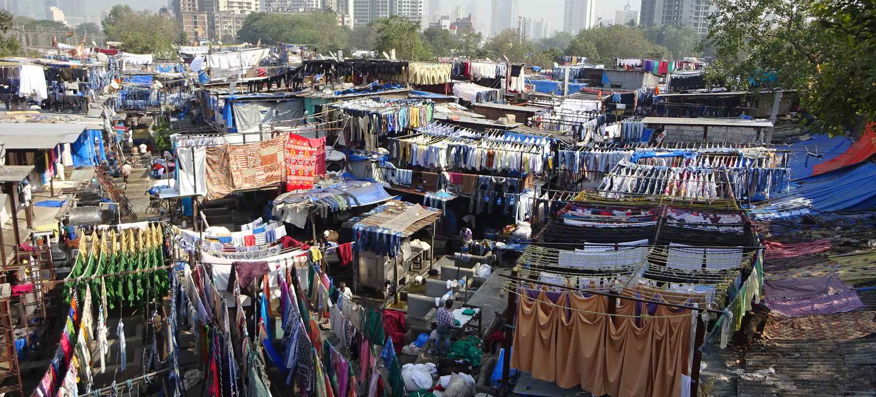 やはり見ておきたかったのは、ドピーガード。発展しヨーロッパのようなムンバイですが、ここは影の部分を残した場所といえるでしょうか。洗濯物はすべて手作業で処理され、ところせましと干されていました。中には高級ホテルのシーツのようなものも見受けられます。 道路のテラスの様なところから巨大洗濯場にむかって石の階段が続いています。階段を降りてこの中がに入って行きたい衝動にかられましたが運転手にとめられました。 ヨーロッパのように経済的に発展したムンバイでインドの一面を見ることができました。 | |