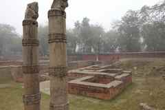 | 一度朝食にホテルに連れて帰ってもらい、一時間後に再び集合。郊外の仏教の四大聖地のひとつ、サルナートへ。街中の喧騒とは無縁ののんびりとした光景が広がります。 ヒンズー教のこの国で差別を否定して生まれたこの宗教が、遠い私達の国で心の安らぎを感じることができるものとして根づいたことが不思議思えてきます。 | ![]() |