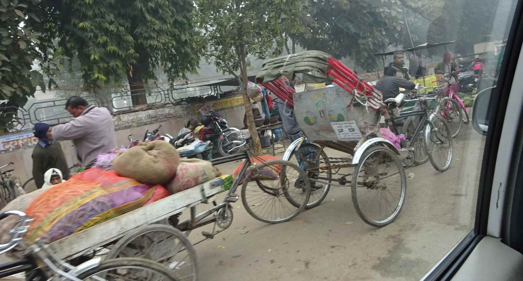 | 暮れも押し迫ったこの日は、バラナシからいよいよデリーへ。夕方の便でしたが早めに空港へ向かいます。ここで時間に遅れると明日のアグラの観光どころか、年明けの帰国にも影響します。 そんな心配を見透かすように、前の便は全く時間に飛び立つ気配はありません。4つしかないゲートですが、どこにあるのかわからないゲートがあるわ、空港の職員さんはどこにいるかわからないは、過去最悪のわからないことだらけです。 飛び立った気配のない他社の便がボートの案内から消えていき、不安マックス。と思っているとなんとかアナウンスが流れ1時間遅れでやっと機内にはいり、デリー空港ではシゲタトラベルの運転手さんが待っていてくれました。 夜のデリーは、都会の危うさ満載の喧騒の街でした。 | |