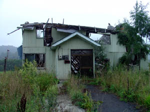 集落東端にある道祖神に軽く手を合わせ、次の駅を目指します。 天塩川の堤防(?)に沿って進むうちに、雲行きはどんどん怪しくなり、次第に弱い雨が降り出しました。 このあたりは2〜3軒の牧場以外に民家のない牧草地帯です。所々荒れ地と化している場所もありました。 国道を離れてから豊清水駅に着くまでにすれ違った車は、空車となった通学バスと1台の乗用車だけでした。 豊清水駅の駅舎は、待合室と保線拠点が一体化しています。 ただし、この駅は無人駅とはいえ、発券窓口がブラインドで降ろされているだけで、 他の無人駅のように、板で塞がれてはいませんでした。窓口にはエゾリスの剥製が置いてありました。 駅を撮影していると、札幌行きの特急列車が通過していきました。 |