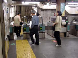 | 東陽町駅の乗り換え、出口階段への降車位置 |