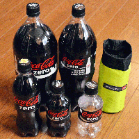 【 ボトル入れの軽量化 】 【 ゼロコーラ 】 【 ザックの肩ベルトに取り付ける 】 【 NEW シューズ! 】 【 その値段 〜 ・・・ 】 2013 年 11 月 27 日(水)【 ボトル入れの軽量化 】 よくある保温タイプのボトルケース 肩ベルトにぶら下げたりして使うのかな? 自分はザックの横にペットボトルを挿しているのだけれど、少し取りづらい やはり肩ベルトに 1 本あれば飲みやすいと思います ![]() 山用品店で購入した MILLET のボトルケース 1,050 円だったかな? 100 円ショップにもありそうなものですが、こちらの方が品物が良さそうだった 偶然ですが、価格は 10 倍ですね・・・ このままでも 41.24 g と軽量 でも、さらに軽量化してみようかとチャレンジ まずは口を締めるロープとストッパーは撤去 サイドのバンドはなぜか 2 重になっているので、内側の 1 本をカット ![]() ぶら下げるためのクリップもニッパーでカットして撤去 バンドで隠れる部分をカットしても割れなかったので、割れ目を通して取り外し 再利用可能な形で外せました このクリップは 5.20 g と、総重量 41 g に対してはかなりのウエイト ![]() 内側を覗くと商品タグが 2 枚 「タグを切って軽量化!」っなんて言いたくないのですが、ジャマなこともあってカット タグの重さを測ったら 0.55 g で、予想よりも数字があった ![]() そんなことで、外した部材の重さ合計は 10.79 g ![]() 全体重量は 30.43 g になりました〜 少し計算が合いませんが・・・ とにかく 41.24 g → 30.43 g とかなりの比率で軽量化できました〜 肩ベルトに固定するための細引きなど、少々追加する必要はあるのですがね・・・ ある程度「コシ」もないと使いづらいので、ボディの軽量化は無理でしょうか? 重要なものほど軽量化できず! 重いものほど軽量化できず! 飲食物、テント、シュラフ、ザイル、カメラ、などはあまり軽量化できない訳で・・・ 軽量化で性能が損なわれることが×ですからね そんなことはありますが、できる範囲で軽量化に努めたいと思いま〜す 2013 年 12 月 08 日(日)【 ゼロコーラ 】 ![]() 小さいペットボトルのゼロコーラを見つけたので 2 本ゲット 2 L、1.5 L、500 mL、300 mL を並べてみました 1 L ってありそうだけど見たことない・・・ 調べたら 1,250 ml と 1,000 ml もあるみたい どこに売ってるんだろ? 2 L は大人数で飲まないと最後の方は炭酸抜け気味 山用には当然のように 500 mL ですが、300 mL もあり? 富士山では一気に炭酸が抜けるので、3 回開け閉めくらいで飲まないと・・・ ![]() 先日加工したボトルケース 500 mL のゼロコーラが入ってます ザック取り付けにはタイラップを使用 リピートタイっという何度も繰り返し使えるもの ザックのストラップに合わせてカットし、2 本で 3.24 g ボトルケース全体では 33.77 g となりました 最軽量とも思われませんが、これはこれで「あり」でしょう・・・ 2013 年 12 月 11 日(水)【 ザックの肩ベルトに取り付ける 】 首がイマイチで休んでいたら、今週はおなかもこわしてさらなる休養状態 チマチマと室内作業してみました ![]() タイラップで作ったリングに 2 mm ロープで網を編んでこんなもの・・・ 全体を黒っぽいロープにしたかったのですが、手持ちが足りず オレンジの部分は 1 本の連続したヒモ・・・ 一筆編みで構成 これの試行錯誤で指先が痛くなってしまいました〜 今回は 5 角 2 段の構成 研究の結果、何角の何段でも一筆で可能と判明 みかんが入ってる網も同様なのでしょうか? 長さ調整が難しいので、キレイに編むには冶具があった方が良さそうですが・・・ ![]() ザックの肩ベルトに取り付けたところ・・・ 上下 2 カ所をタイラップで固定し、ボトルネックはストッパーで固定 タイラップは再利用できるリピートタイを必要な長さにカットして使用 この状態で 12.85 g ボトルを実用的に肩ベルトに付ける、ってことでは軽量? ロープは 2 mm なので、もっと細くても可・・・ ![]() 肩ベルトに固定するもの・・・ 左から 1.78 g、1.48 g、0.72g ( 2 mm ロープは 30 cm ) そりゃあ 2 mm ロープが軽いですが、見た目や使い勝手が・・・ リピートタイは非常に便利で、いつも 5 〜 6 本携行 ザックの後ろにヘルメットや帽子を固定したり、靴の修理など非常用にも さて、 ![]() これが肩ベルトに付けると大変使いやすいミニバッグでして・・・ 上部に丸いリングが入っていて、常に入口が開いてる デジカメの出し入れがスムースで便利なのです 100 円ショップでゲットしたのですが、その他の店では売られていない この状態で 18.13 g と軽量な点も ただ、この絵柄が・・・ そこで、 ![]() 裏返して使ってはどうか? ついでにクリップを外し、カットしたリピートタイに換えて15.50 g ![]() 肩ベルトに取り付け、デジカメを入れた デジカメのストラップを長いままのリピートタイに通してる カメラを出してこのまま撮影でき、落とすこともない カットしてないリピートタイ 1 本は 2.89 g 次に、 他のバッグも 2 つ・・・ ![]() モンベルのキッズチョークバッグというもの・・・ とてもか