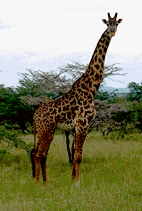 固いトゲアカシアの葉を食べるキリンの群れ。