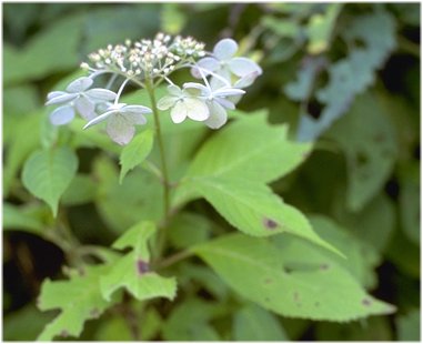 ※ユキノシタ科ギンバイソウ属。二またに分かれた葉っぱが特徴。鬱蒼とした林内に生えていると気味が悪くなるが、花は美しいもの。