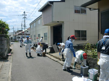 ひげの現地での実際の作業は今日で終わり。 明日は、テントの下で、資材班。 ボランティアのメンバーが必要とする機材を貸し出し、受け取り、洗浄して保管という作業です。