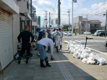 我が班の紅一点、岡*さんは、男性陣顔負けの活躍。 土嚢運び以外は、何でもこなします。