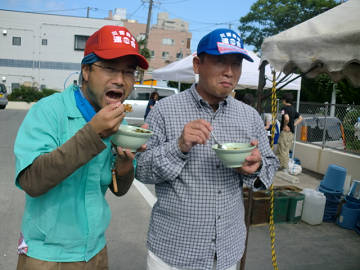 地元のご婦人方が カレーとカキ氷 のサービス。 陽気なご婦人ばかり。 浜どおり の女性の気質かな???