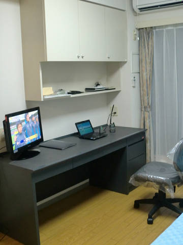 「いやー、三ヶ月と知っていれば、上の階を準備したのに。」 と館長さんは言ってくれますが、朝6時には出社し、夜戻るのは7時前後、週末は自宅に戻りますので、景色の良し悪しはあまりきになりません。