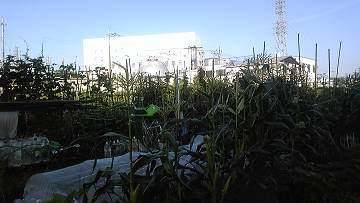 寮から事務所までの途中に、市民農園があります。 一区画40平米ほどでしょうか。 皆さん、工夫され、色々な夏野菜が育っています。