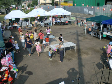 今日は町内会の納涼大会! 朝から、班長さん、役員さんを中心に会場の設営準備やら、食材の準備。